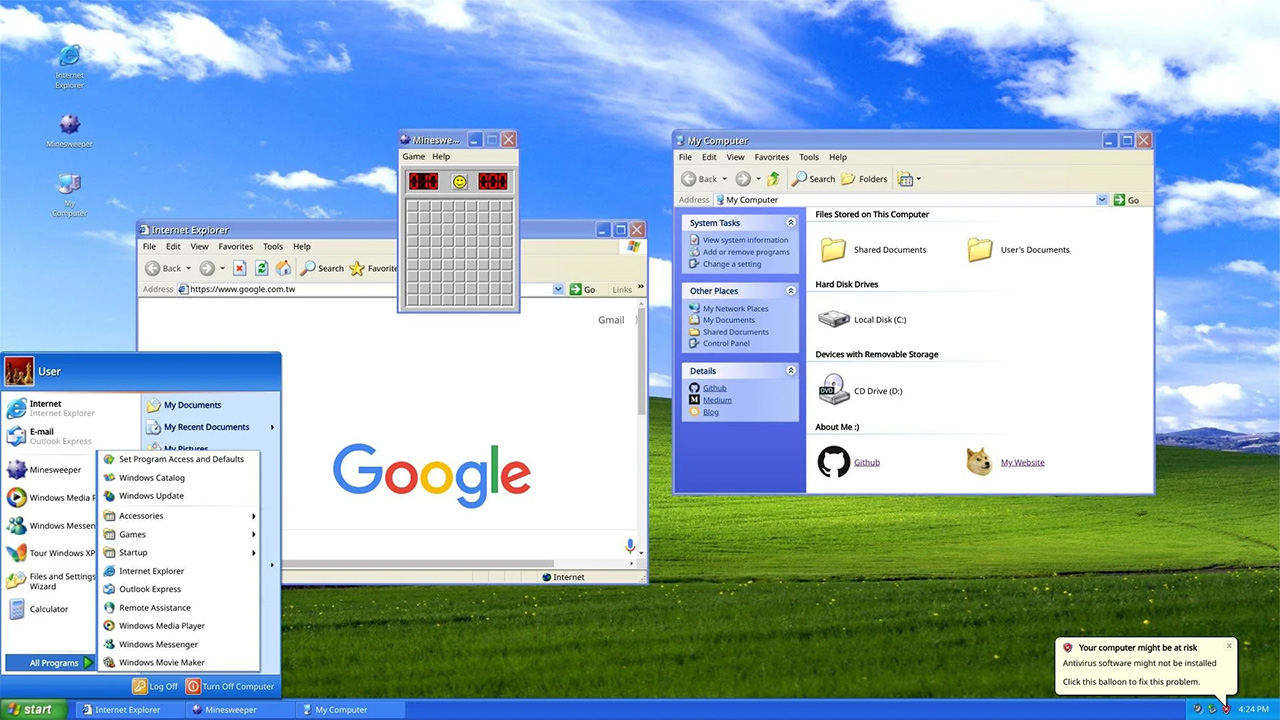 Adapting to Web 1.0 Technologies: Windows XP was crafted to integrate seamlessly with the technologies of the early 2000s, a period dominated by Web 1.0. This era was characterized by static HTML websites, basic CSS for styling, and the infancy of JavaScript, which was primarily used for simple client-side interactions. Web development was largely focused on creating informative, static pages, with limited user interactivity.